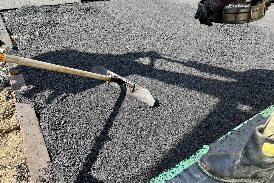 舗装工事舗装工事とは、人や車が安全に通行できるように、道路などの地盤面にアスファルトやコンクリートを敷き固める工事のことを言います。